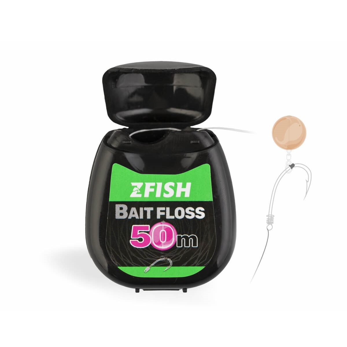 Zfish Bait Floss je izvrstan plutajući konac dizajniran za pričvršćivanje mamca. Zahvaljujući svojim jedinstvenim svojstvima, ovaj konac je apsolutno idealan za stvaranje suptilnih završnih sistema s POP-UP mamcima svih oblika i veličina. Nakon što je mamac vezan čvorom, jednostavno zagrijte krajeve upaljačem – konac će se skupiti i sigurno držati čak i najglatkije mamce. Isporučuje se u praktičnoj špulni od 50 m koja će trajati godinama.